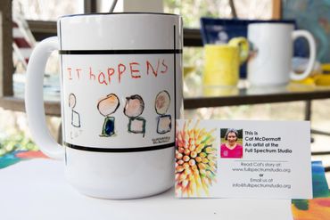 Cat creates in various mediums such as clay, paint, various forms of 2D drawing, and abstract collage. As a founding artist at the FSS Cat has been through all the moves, temporary spaces, and sometimes uncomfortable work spaces. But she has met the challenges we have put in front of her every time, continues to exceed expectations.